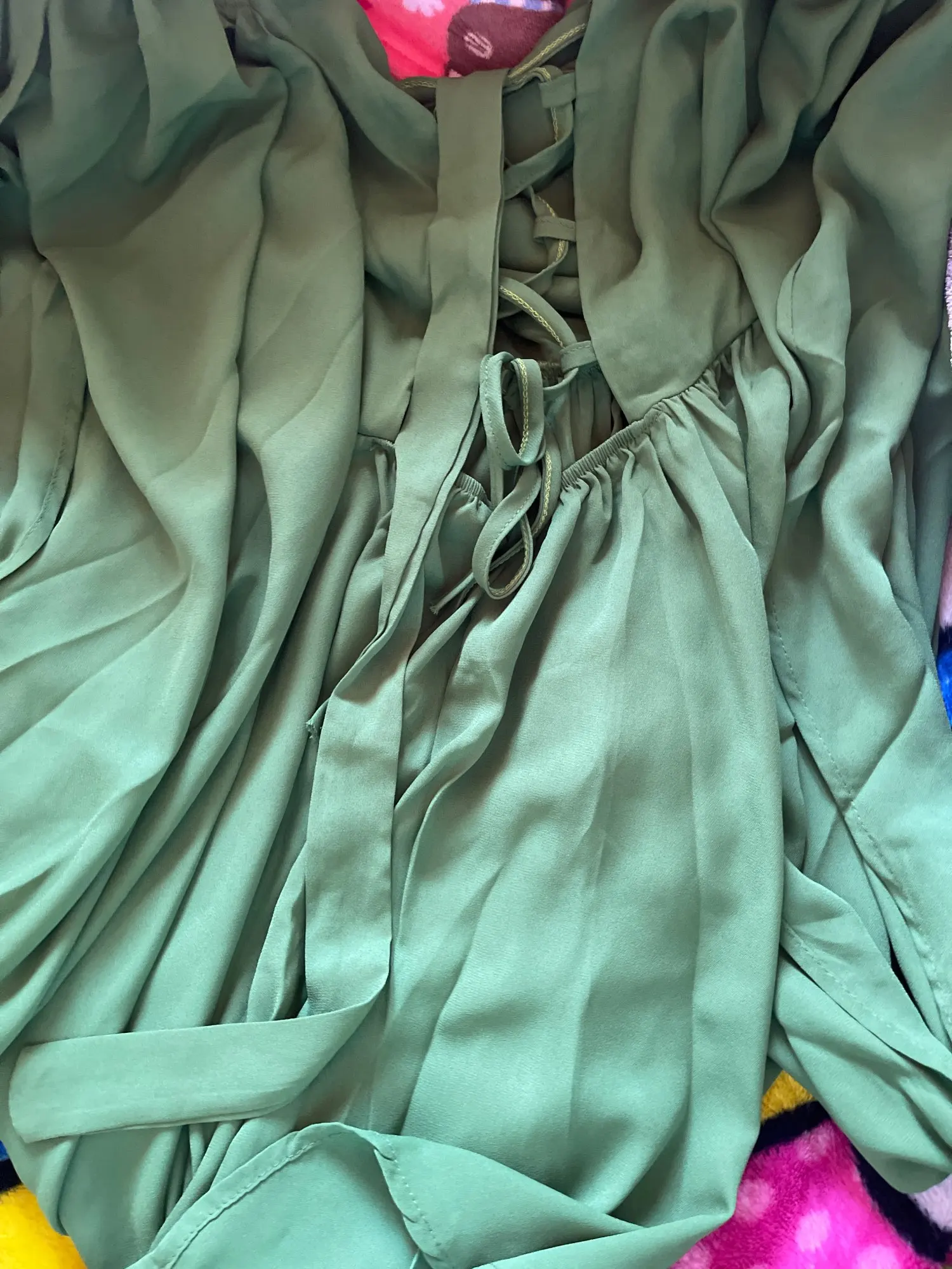 Does not look exactly like the photos but its a nice dress :)