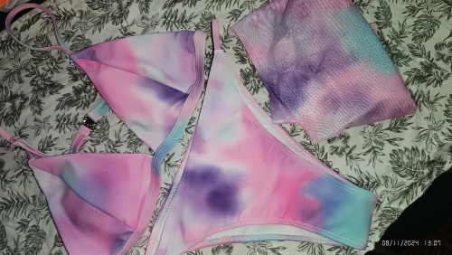 Women's Split High Waist Tie-Dye Printed Three-Piece Skirt Style Mesh Bikini
