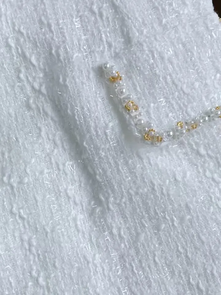 Elegant White Shoulder Pad Dress – Luxe Tweed A-line Party Dress for Special Occasions