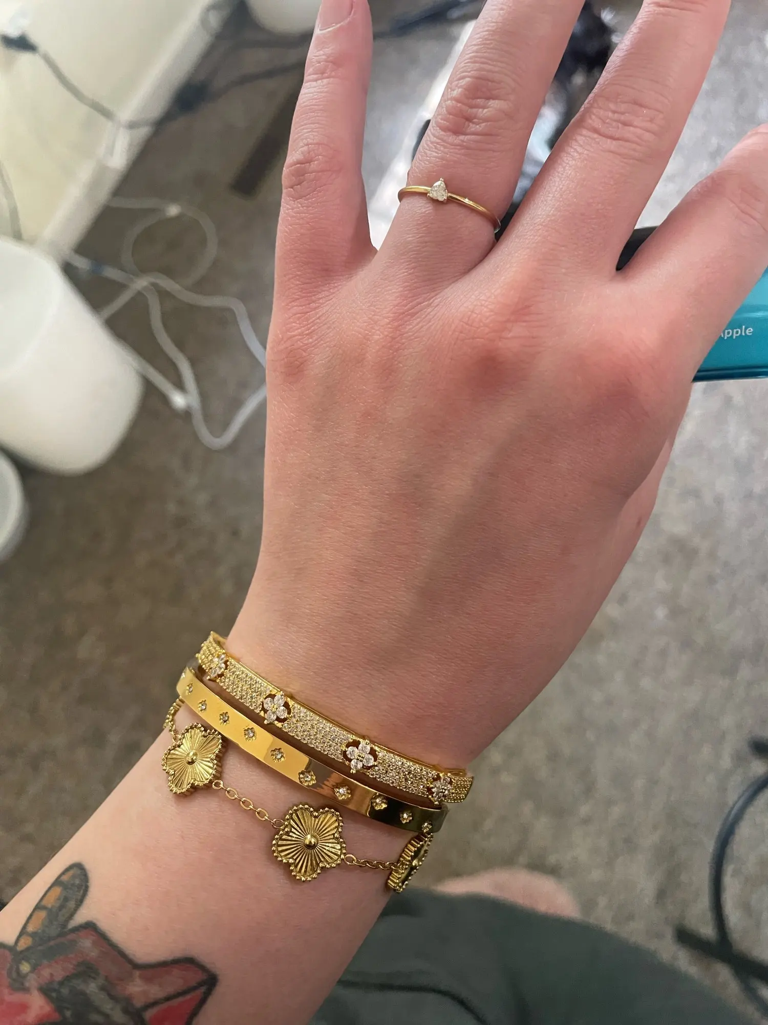 Elegant Zircon Four-Leaf Flower Bracelet – Vintage French Charm
