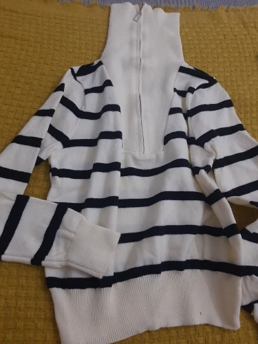 Zipper Striped Pullover Sweater – Sleek & Modern